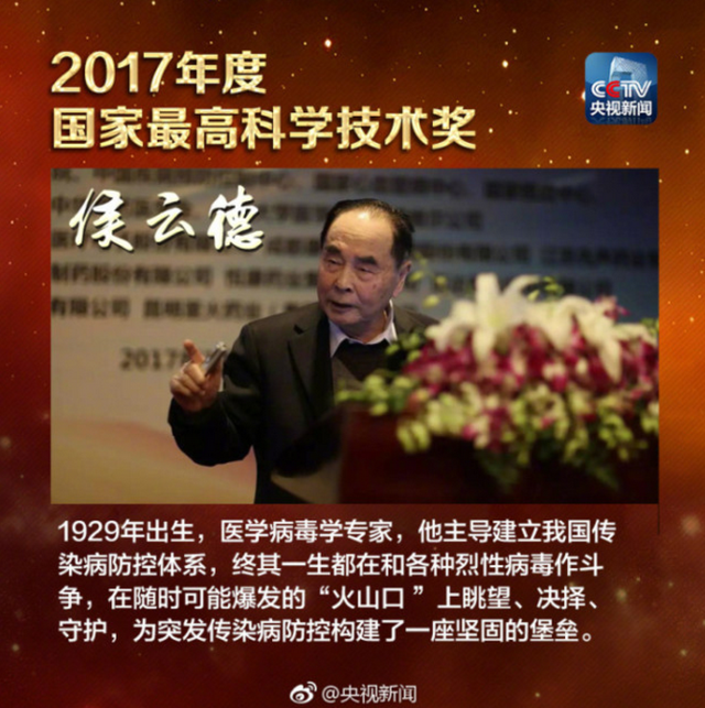 祝贺!我司创始人、名誉董事长侯云德院士荣获2017国家最高科学技术奖 祝贺!我司创始人、名誉董事长侯云德院士荣获2017国家最高科学技术奖 2018年1月8日,2017年度国家科学技术奖励大会在人民大会堂举行,中国疾病预防控制中心病毒病所研究员、中国工程院院士侯云德,获国家最高科学技术奖。我公司专家侯云德院士年近九旬,是我国分子病毒学和基因工程药物的主要奠基人,主导建立了举国体制协同创新的传染病防控技术体系,成功应对了近十年来国内和国际数次的重大传染病疫情。在此,金迪克全体员工,向侯老致以最衷心的祝贺! 下一篇: 江苏金迪克正式登陆科创版